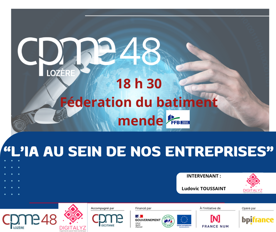 La CPME Occitanie vous invite à participer à une série d’ateliers interactifs gratuits, organisés dans les différents départements de la région. Ces ateliers, financés par le plan France Relance, à l’initiative de France Num et opérés par BPI France, sont spécialement conçus pour soutenir les dirigeants de petites et moyennes entreprises.